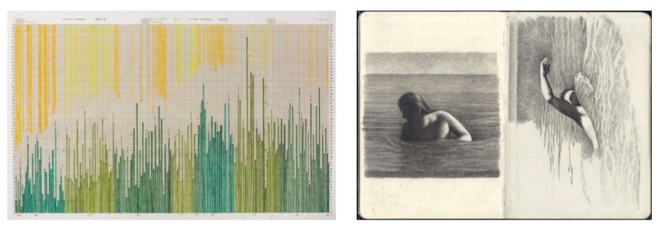 Aleksandra Czuja, Of The Series “Le Temps”, diptych, fineliner on paper, 2022 (first image below)